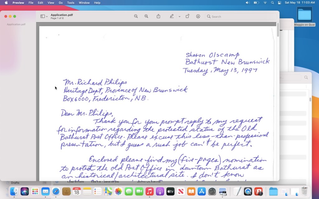 I’d like to talk about a historic property in Bathurst, NB, Canada. It is fondly called “The Old Post Office’ by locals who live here. In some of the small communities along Chaleur Bay it is also gaining a name as a possible future art centre. As can be seen in the above exerpt of a letter written by me in 1997, it has been almost thirty years that I’ve been waiting and hoping for this.